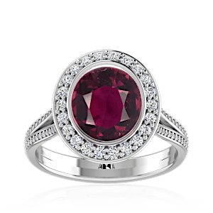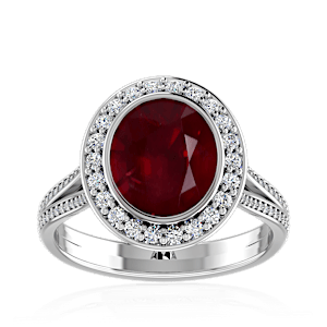 1.59ct Mozambique Ruby set in Luxury Halo Crown Diamond Ring