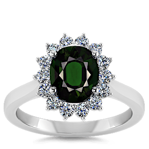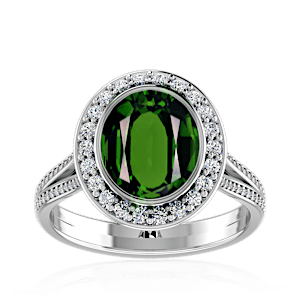 2.46ct Chrome Tourmaline set in Luxury Halo Crown Diamond Ring