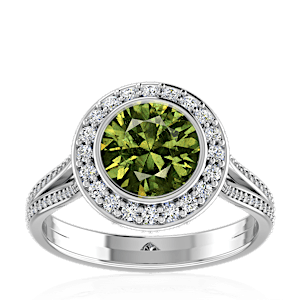 3.51ct Demantoid Garnet set in Luxury Halo Crown Diamond Ring