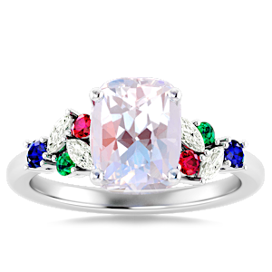 1.71ct Rainbow Moonstone set in Modern Tri Color Gems & Diamond Ring