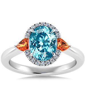 1.08ct Cuprian Tourmaline set in Sunny Modern Diamond Halo Ring