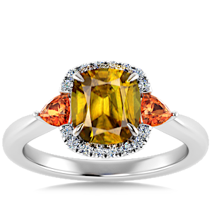 2.84ct Spessartite set in Sunny Modern Diamond Halo Ring