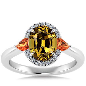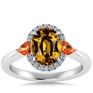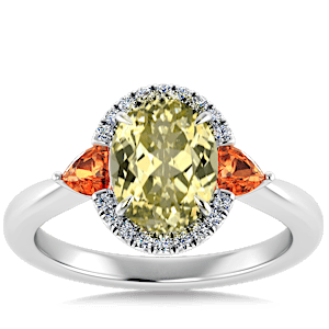 3.38ct Grossular Garnet set in Sunny Modern Diamond Halo Ring