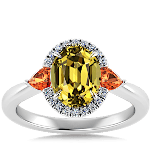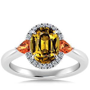 3.42ct Grossular Garnet set in Sunny Modern Diamond Halo Ring