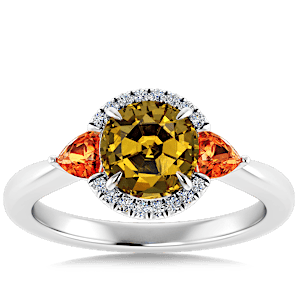 2.67ct Grossular Garnet set in Sunny Modern Diamond Halo Ring