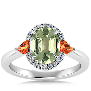 6.40ct Spessartite set in Sunny Modern Diamond Halo Ring