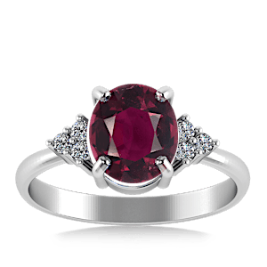 4.07ct Rhodolite set in Minimal Classic Trinity Diamond Ring