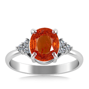 5.31ct Spessartite set in Minimal Classic Trinity Diamond Ring