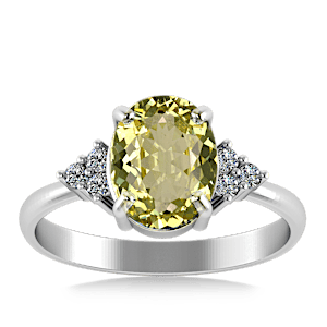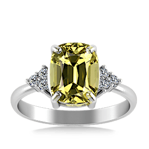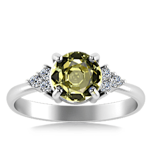 View Designs Instagram4.62ct Sphene set in Minimal Classic Trinity Diamond Ring