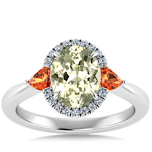 3.17ct Grossular Garnet set in Sunny Modern Diamond Halo Ring