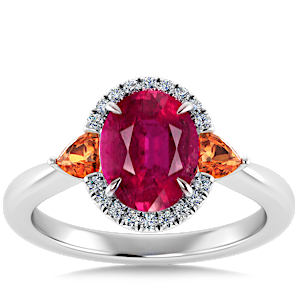 View Designs Instagram1.04ct Mozambique Ruby set in Sunny Modern Diamond Halo Ring