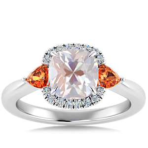 3.17ct Rainbow Moonstone set in Sunny Modern Diamond Halo Ring