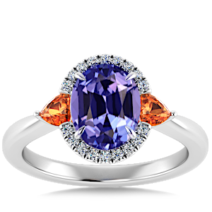 3.31ct Tanzanite set in Sunny Modern Diamond Halo Ring