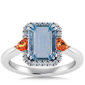 1.00ct Aquamarine set in Sunny Modern Diamond Halo Ring