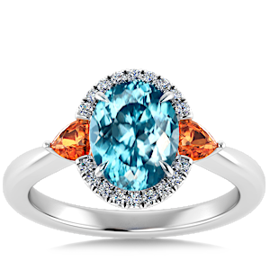 View Designs Instagram2.38ct Cuprian Tourmaline set in Sunny Modern Diamond Halo Ring