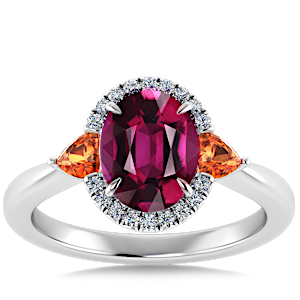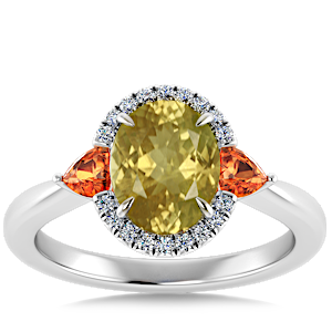 3.49ct Spessartite set in Minimal Classic Trinity Diamond Ring