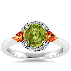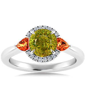 3.30ct Sphene set in Minimal Classic Trinity Diamond Ring