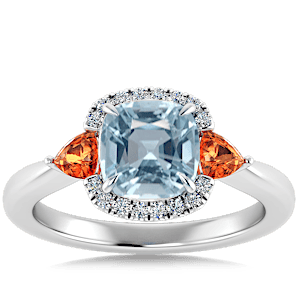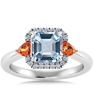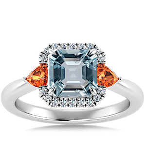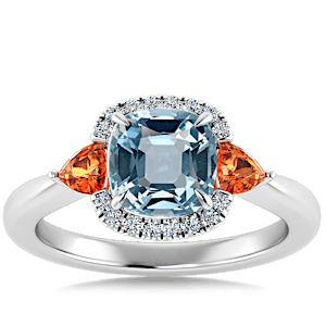View Designs Instagram2.98ct Aquamarine set in Sunny Modern Diamond Halo Ring