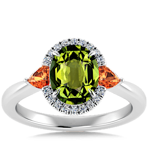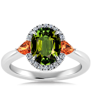 3.08ct Green Tourmaline set in Sunny Modern Diamond Halo Ring