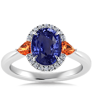 3.59ct Blue Sapphire set in Sunny Modern Diamond Halo Ring