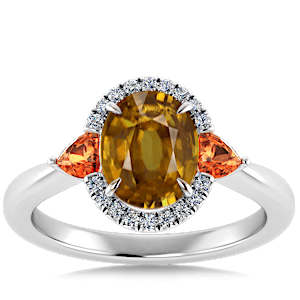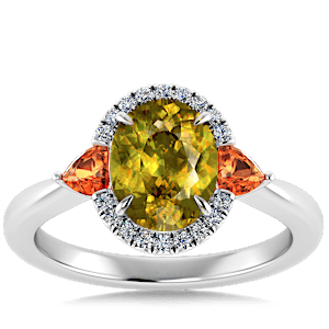 2.98ct Sphene set in Minimal Classic Trinity Diamond Ring