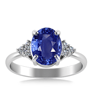 1.61ct Blue Sapphire set in Minimal Classic Trinity Diamond Ring