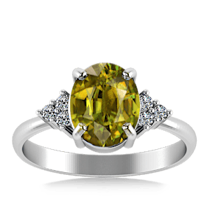 4.53ct Sphene set in Minimal Classic Trinity Diamond Ring