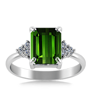 3.94ct Green Tourmaline set in Minimal Classic Trinity Diamond Ring