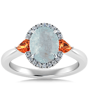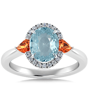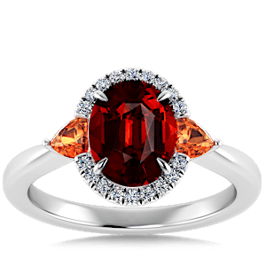 6.40ct Spessartite set in Sunny Modern Diamond Halo Ring
