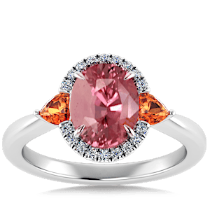 1.57ct Padparadscha Sapphire set in Sunny Modern Diamond Halo Ring