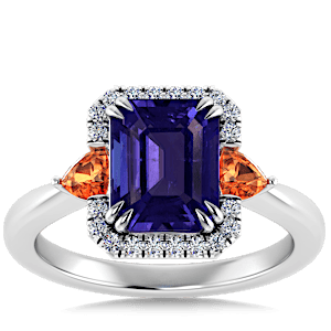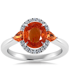5.31ct Spessartite set in Sunny Modern Diamond Halo Ring