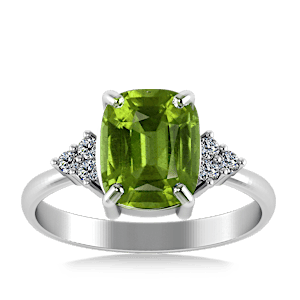 4.59ct Peridot set in Minimal Classic Trinity Diamond Ring