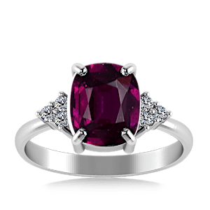 4.07ct Rhodolite set in Minimal Classic Trinity Diamond Ring