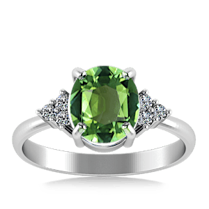 4.10ct Green Tourmaline set in Minimal Classic Trinity Diamond Ring