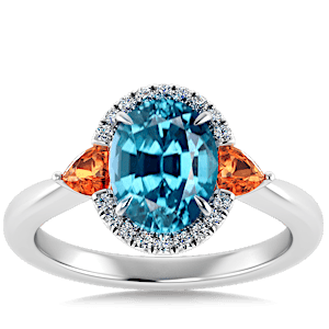 2.70ct Cuprian Tourmaline set in Sunny Modern Diamond Halo Ring