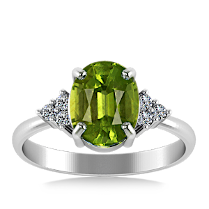 3.66ct Peridot set in Minimal Classic Trinity Diamond Ring