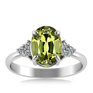 View Designs Instagram4.62ct Sphene set in Minimal Classic Trinity Diamond Ring