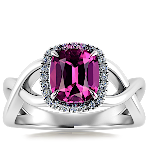 2.21ct Rhodolite set in Halo Vined Natural Diamond Ring