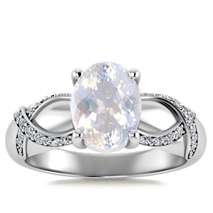 2.60ct Rainbow Moonstone set in Vintage Twilight Natural Diamond Ring