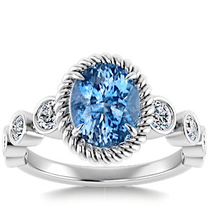 3.13ct Aquamarine set in Vintage Twilight Natural Diamond Ring