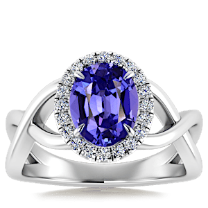 2.74ct Tanzanite set in Halo Vined Natural Diamond Ring