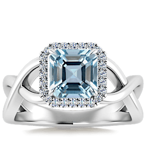 1.73ct Aquamarine set in Halo Vined Natural Diamond Ring