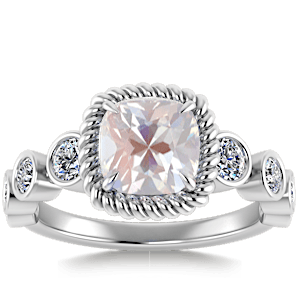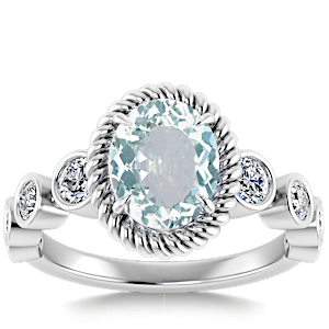 1.98ct Aquamarine set in Vintage Twilight Natural Diamond Ring