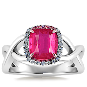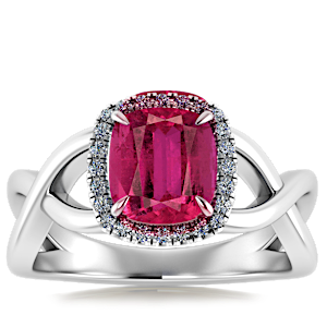 1.63ct Rubellite Tourmaline set in Halo Vined Natural Diamond Ring