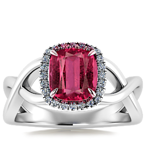 1.58ct Rubellite Tourmaline set in Halo Vined Natural Diamond Ring