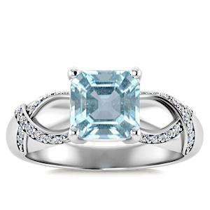 1.47ct Aquamarine set in Vintage Twilight Natural Diamond Ring