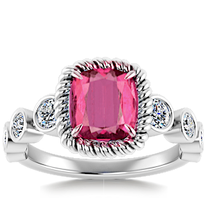 1.75ct Rubellite Tourmaline set in Vintage Twilight Natural Diamond Ring