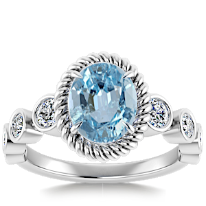 2.36ct Aquamarine set in Nature Entangled Vintage Natural Diamond Ring