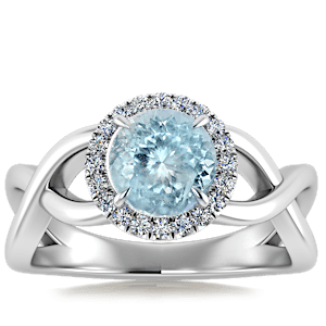 1.00ct Aquamarine set in Halo Vined Natural Diamond Ring