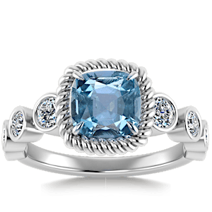 1.12ct Aquamarine set in Vintage Twilight Natural Diamond Ring